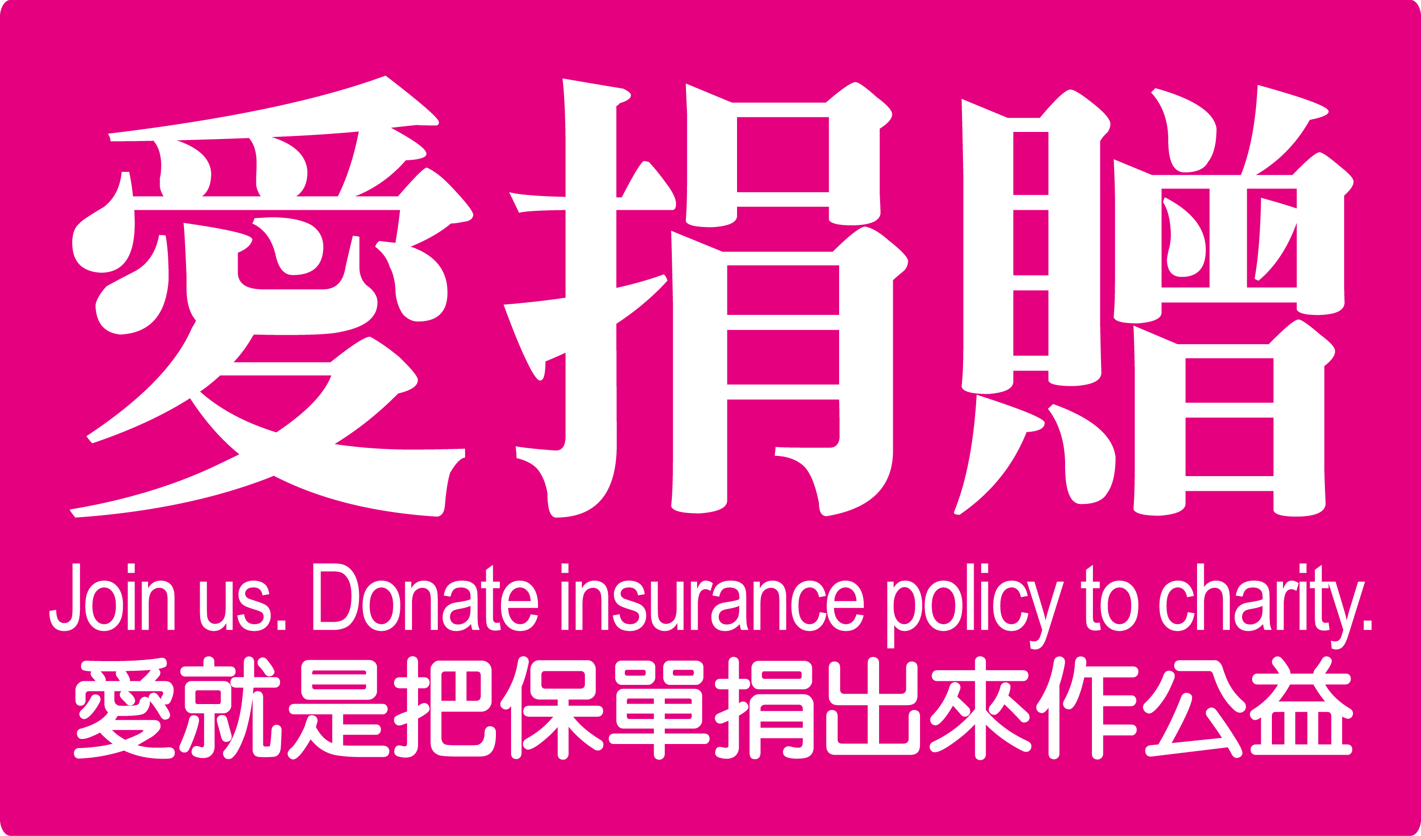 - 熱愛生命、努力公益,以保單捐贈為志業,創造新社會公益運動,貢獻並回饋台灣社會,讓愛永不止息。
