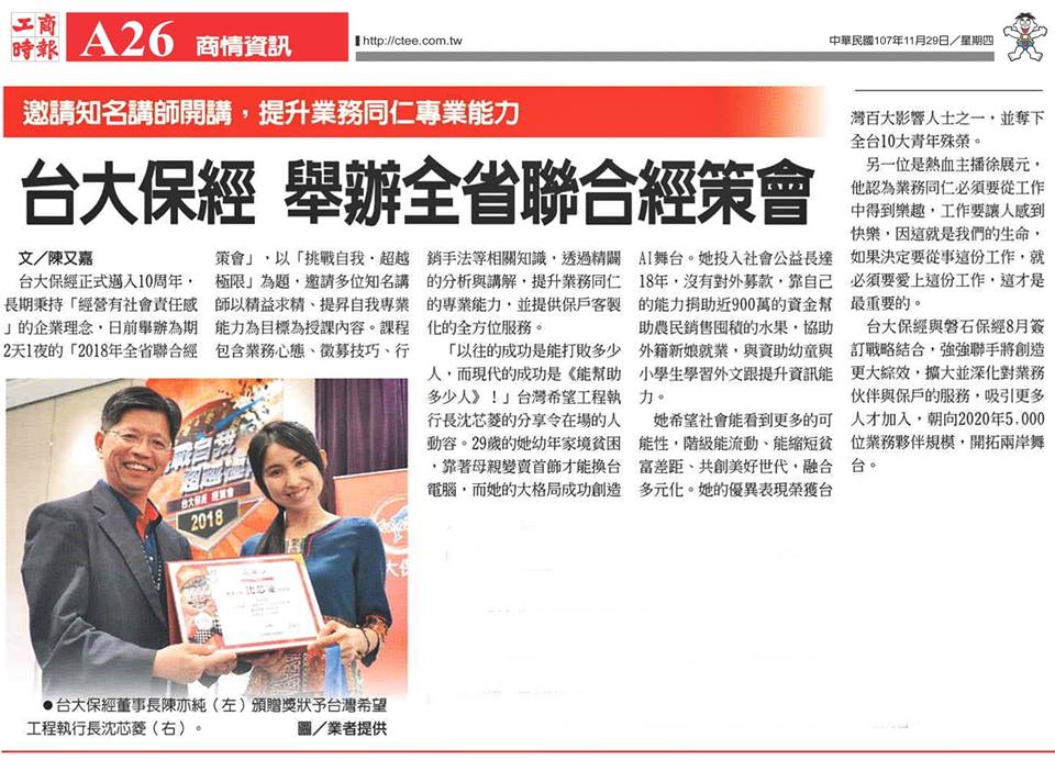 台大保經表揚大會 2018年志創高峰