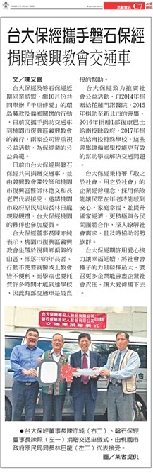 台大保經攜手磐石保經 捐贈義興教會交通車